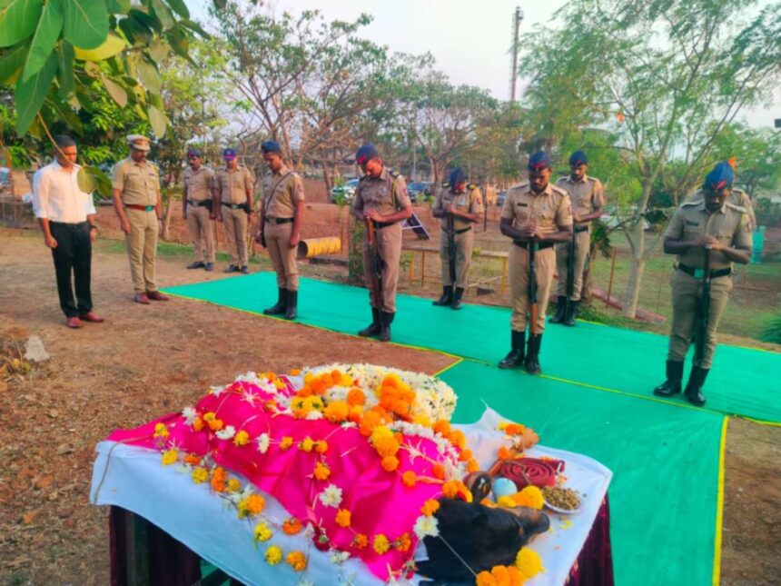 रत्नागिरी पोलिसांचा विश्वासू आणि धाडसी साथीदार असलेला पोलीस श्वान ‘विराट’ याचे गुरुवारी आकस्मिक निधन झाले. एका कर्तबगार सहकाऱ्याच्या अचानक जाण्याने संपूर्ण रत्नागिरी पोलीस दलात शोककळा पसरली. त्याच्यावर जिल्हा पोलीस अधीक्षक नितीन बगाटे आणि अपर पोलीस अधीक्षक बी. बी. महामुनी यांच्या उपस्थितीत शासकीय इतमामात अंत्यसंस्कार करण्यात आले.