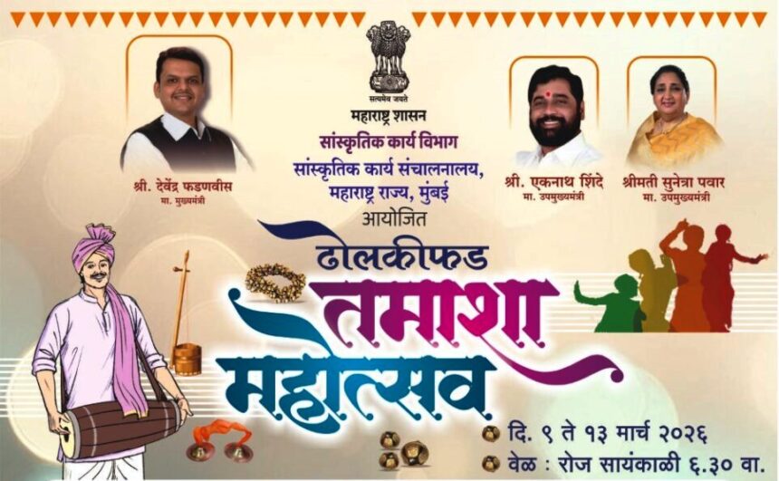 सांस्कृतिक कार्य संचालनालयामार्फत विविध प्रकारच्या कार्यक्रमांचे आयोजन करण्यात येते. याचाच एक भाग म्हणून ९ मार्च ते १३ मार्च, २०२६ या कालावधीत ढोलकीफड तमाशा महोत्सवाचे आयोजन करण्यात आले आहे.