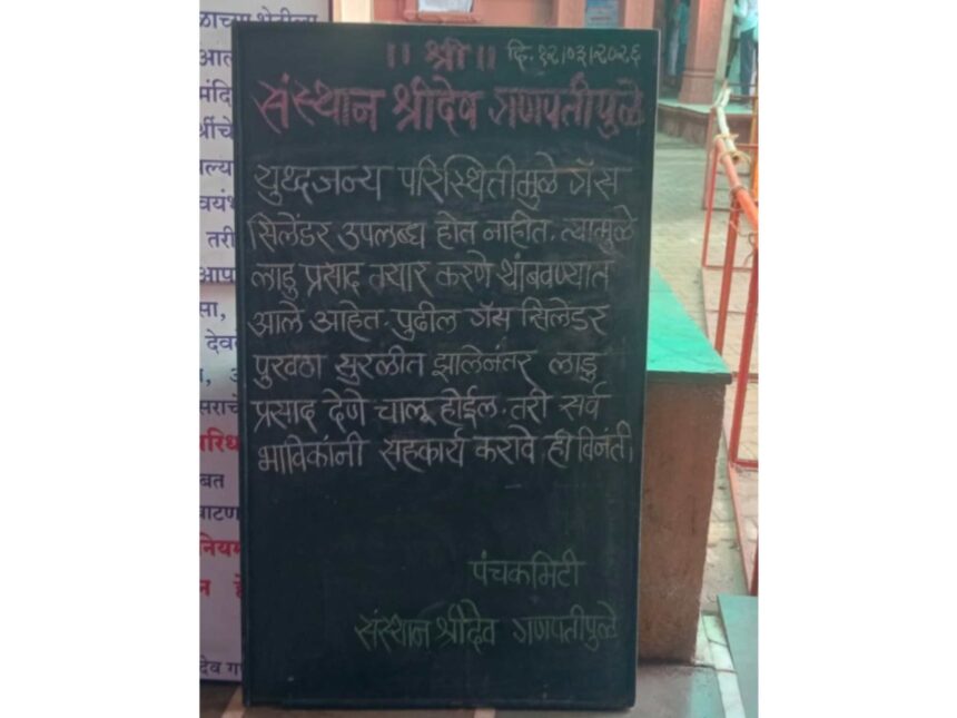 महाराष्ट्रातील लाखो भाविकांचे श्रद्धास्थान असलेल्या गणपतीपुळे येथील स्वयंभू श्री गणपती मंदिरात दिला जाणारा प्रसिद्ध लाडूप्रसाद सध्या बंद करण्यात आला आहे. आंतरराष्ट्रीय पातळीवर वाढलेल्या तणावामुळे आणि अमेरिका-इराण-इस्रायल या देशांमधील युद्धजन्य परिस्थितीमुळे निर्माण झालेल्या गॅस तुटवड्याचा फटका आता देवस्थान व्यवस्थेलाही बसू लागला आहे.
