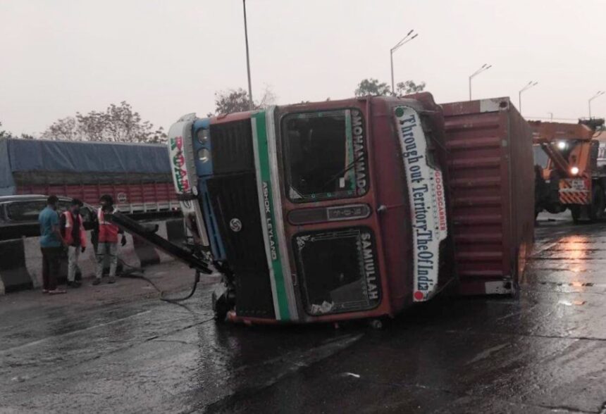 मुंबई–पुणे द्रुतगती मार्गावर मासे वाहतूक करणारा ट्रक आज (शुक्रवारी) सकाळी उलटल्याची घटना घडली. बोरघाटातील अमृतांजन ब्रिजजवळ हा अपघात झाल्यामुळे काही काळ मुंबईकडे येणारी वाहतूक विस्कळीत झाली होती.