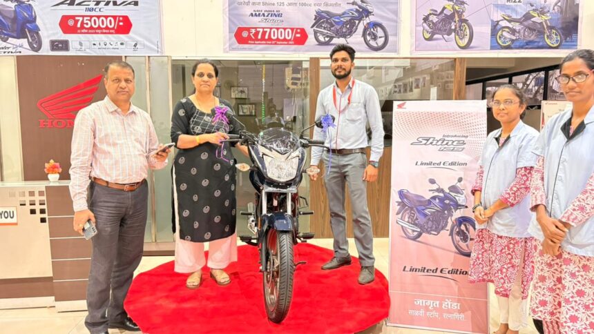 रत्नागिरी येथील होंडा या जगप्रसिद्ध दुचाकी वाहनांचे अधिकृत डीलर मे. जागृत होंडा येथे ह शाईन १२५ लिमिटेड एडिशन चे अनावरण ग्राहकाच्या उपस्थितीत मोठ्या उत्साहात पार पडले, होंडा या जगप्रसिद्ध दुचाकी निर्माते असलेली शाईन १२५ लिमिटेड एडिशन हि शृंखला बाजारात आणली आहे. मोटारसायकल श्रेणी मध्ये आव्वल असणाऱ्या शाईन १२५ यामध्ये आता नवीन व स्टायलिश लूक असलेली शाईन १२५ लिमिटेड एडिशन हि गाडी ग्राहकांना उपलब्ध झाली असून नुकतेच त्याचे अनावरण जागृत मोटर्स चे मॅनेजिंग डायरेक्टर श्री राजेंद्र जोशी व सौ. रेश्मा जोशी व प्रथम ग्राहक यांचे हस्ते करण्यात आले.