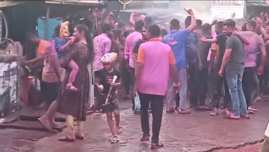 या उत्सवादरम्यान घरोघरी आनंदाचे वातावरण होते. प्रत्येक घरात काजुगर घातलेले मटण, वडे आणि भाकरी असा फक्कड बेत आयोजित करण्यात आला होता. विशेष म्हणजे प्रत्येक घरातील सर्व सदस्य एकमेकांना नखशिखांत रंगवत होते. यामध्ये महिलांचाही मोठा सहभाग होता. परंपरेनुसार एकमेकांना रंगवण्यामध्ये जावयाचा मान सर्वाधिक असतो. घरातील सर्व सदस्य जावयाला लाल रंगांनी अक्षरशः न्हाऊ घालत होते. धार्मिक विधी म्हणून कसबा येथील चंडिका मंदिरात, संगमेश्वर येथील निनावी आणि जाखमाता मंदिरात तसेच फणसवणे येथील मूळ जाखमाता मंदिरातही भक्तगांनी दर्शनासाठी सकाळपासून रांगा लावल्या होत्या.