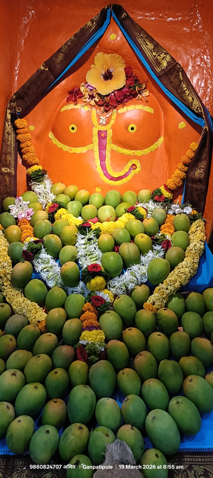 मालगुंड गणपतीपुळे पंचक्रोशीतील ज्येष्ठ आंबा व्यावसायिक अनंत सुधाकर मोरे आणि समस्त मोरे परिवारामार्फत जागतिक स्तरावरील सुप्रसिद्ध असलेल्या श्री क्षेत्र गणपतीपुळे येथील स्वयंभू श्री लंबोदराच्या मुख्य गाभाऱ्यात मंदिराचे मुख्य पुजारी अमित प्रज्ञा प्रभाकर घनवटकर यांच्या द्वारे “श्रीं” च्या चरणी आम्रफळांची नयनरम्य आणि मनमोहक आरस साकारण्यात आली आहे. आजच्या शुभ दिनी गणपती मंदिरात भाविकांनी श्रींच्या दर्शनासाठी मोठ्या रांगा लावल्याचे चित्र दिसून आले. यावेळी स्थानिकांंबरोबरच अनेक भाविक व पर्यटकांनी श्रींचे दर्शन घेऊन एकमेकांना गुढीपाडवा व हिंदू मराठी नववर्षाच्या शुभेच्छा देऊन आपला आनंद अधिक द्विगुणित केला.