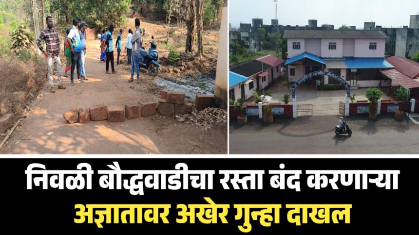 रत्नागिरी ग्रामीण पोलीस ठाणे हद्दीतील निवळी बौद्धवाडीकडे जाणारा रस्ता चिरे टाकून अडविणाऱ्या अज्ञात व्यक्तीविरुद्ध अखेर गुन्हा नोंदविण्यात आला आहे. वारंवार घडणाऱ्या अशा प्रकारांमुळे ग्रामस्थांमध्ये तीव्र नाराजी निर्माण झाली असून सार्वजनिक मार्गावर अडथळे उभे करून नागरिकांची गैरसोय करणाऱ्यांविरोधात कठोर कारवाईची मागणी वंचित बहुजन आघाडीसह बहुजन समाज पार्टीने अप्पर पोलिस अधीक्षक यांना निवेदनाद्वारे केली आहे.
