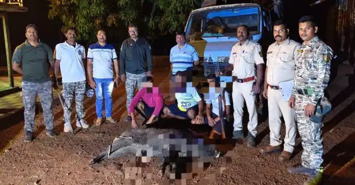 प्राथमिक तपासात ही शिकार प्रसाद सुभाष सोम, रोशन रमेश मोरे आणि संदीप वसंत गावडे (सर्व रा. गिमवी) यांनी केल्याचे निष्पन्न झाले आहे. वनविभागाने तिघांनाही ताब्यात घेतले असून, पुढील चौकशी सुरू आहे.