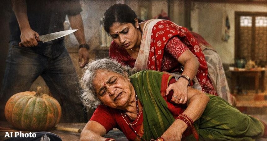 पोलिसांकडून मिळालेल्या माहितीनुसार, २४ मार्च २०२६ रोजी दुपारी साडेतीनच्या सुमारास साक्षीदार प्रकाश धोंडू म्हापार्ले यांच्या घरातील भोपळा आरोपी घेऊन जात असताना, “भोपळा का नेत आहेस?” असा जाब विचारण्यात आला. यावरून आरोपी सुधीर विष्णु दिवाळे (वय ४२, रा. कळंबुशी, म्हापार्लेवाडी) याने संताप व्यक्त करत शिवीगाळ केली तसेच उपस्थित फिर्यादी सानिका सचिन दिवाळे यांनाही “तुम्हाला बघून घेतो, सुरा आणून एकेकाला भोसकेन,” अशी धमकी दिल्याचे तक्रारीत नमूद आहे. यानंतर सायंकाळी सुमारे ७.४५ वाजण्याच्या सुमारास आरोपी पुन्हा फिर्यादीच्या घरी पोहोचला. घरात घुसून “तुझा पती सचिन कुठे गेला, त्याला बघतो,” अशी धमकी देत शिवीगाळ करत घरभर फिरू लागल्याचे सांगण्यात आले. या वेळी त्याला अडवण्यासाठी पुढे गेलेल्या सुनिता दत्ताराम दिवाळे (वय ७२) यांना आरोपीने ढकलाबुकल केल्याने त्या जमिनीवर पडल्या आणि त्यांच्या कमरेला दुखापत झाली.