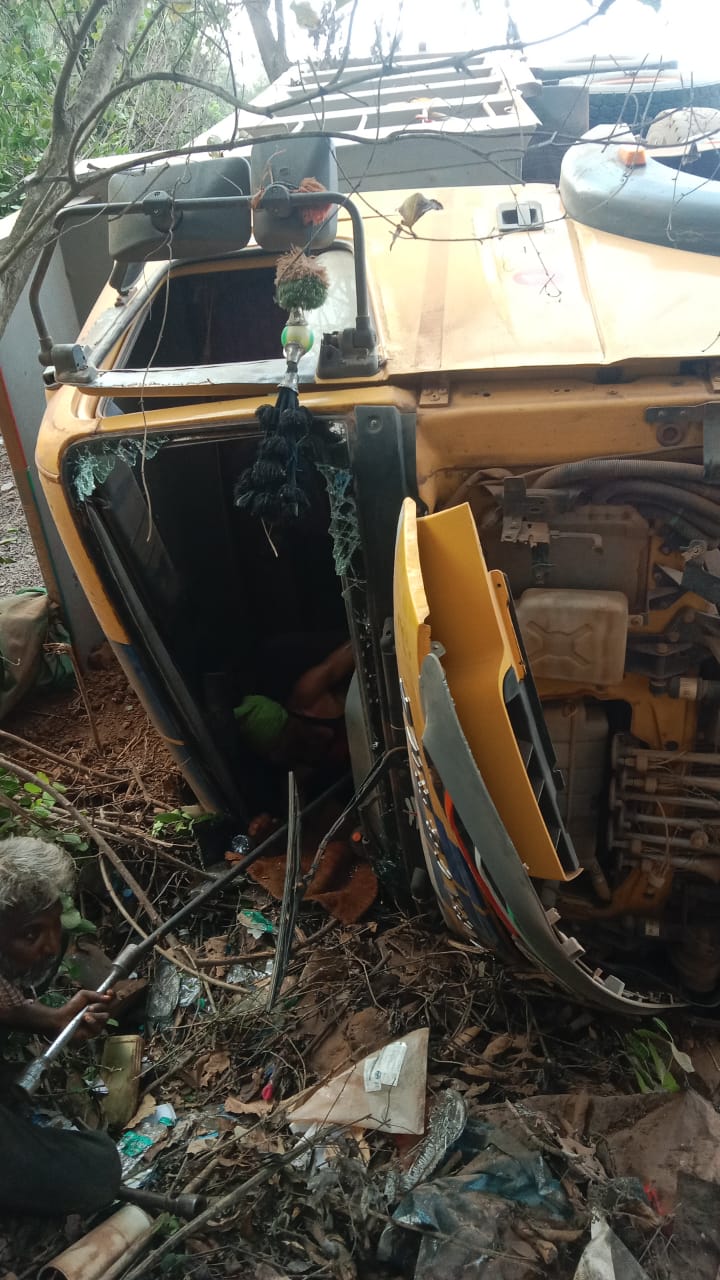 आज (शुक्रवारी) सायंकाळी ४ ते साडेचारच्या सुमारास हा अपघात झाला. उतारावर डंपरचा वेग अनियंत्रित झाल्याने तो थेट खाली कोसळला. मोठा आवाज होताच आजूबाजूच्या वाडीतील नागरिक, रिक्षा चालक-मालक आणि पोलीस पाटील प्रशांत थूळ यांनी तातडीने घटनास्थळी धाव घेतली. डंपरच्या चेपलेल्या कॅबिनमधून चालक राऊत राय यांचा ‘वाचवा-वाचवा’ असा आर्त हंबरडा येत होता. त्यांचे पाय स्टेरिंगमध्ये अशा पद्धतीने अडकले होते की, डंपर उभा केल्याशिवाय त्यांना बाहेर काढणे अशक्य होते.