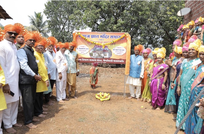 कार्यक्रमाच्या प्रारंभी मान्यवरांचा कोल्हापुरी फेटे बांधून सन्मान करण्यात आला. त्यानंतर उपस्थितांनी कुलदैवताचे दर्शन घेत गणेश मंदिर, हनुमान मंदिर आणि श्रीराम मंदिर येथे प्रदक्षिणा घातली. या वेळी ज्येष्ठ ग्रामस्थ गणुजी हिरू फेपडे यांच्या हस्ते बहुउद्देशीय समाज ज्ञान मंदिर या संकल्पनेच्या बॅनरचे अनावरण करण्यात आले.