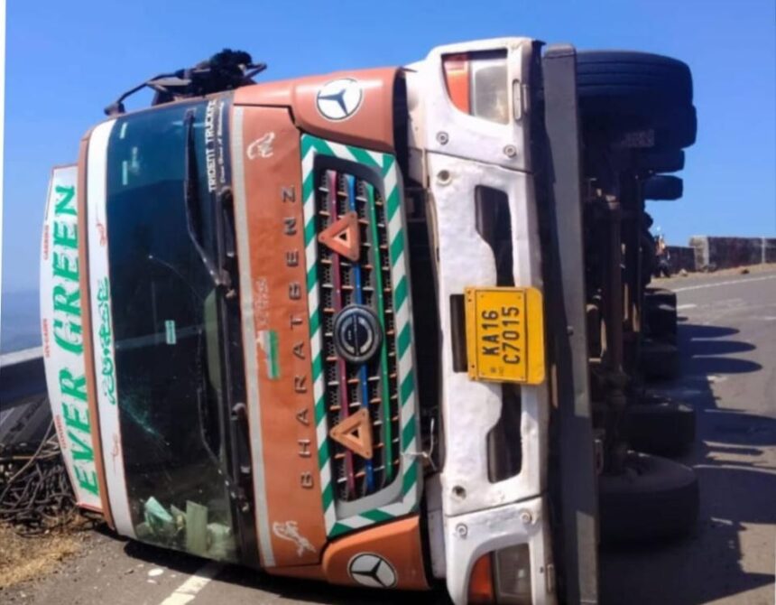 अनुस्कुरा घाटातील पांगरी गावाजवळ आज (दि. २९ मार्च २०२६) सकाळी सुमारे १०.१५ वाजण्याच्या सुमारास सिमेंट पत्रे वाहतूक करणारा १४ चाकी भारत बेन्झ ट्रक पलटी झाल्याची घटना घडली. या प्रकरणी रायपाटण पोलिस ठाण्यात चालकाविरोधात गुन्हा दाखल करण्यात आला आहे.
