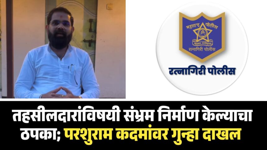 समाजमाध्यमांवर व्हिडीओ प्रसारित करून तहसील प्रशासनाच्या कामकाजाबाबत लोकांमध्ये संभ्रम निर्माण केल्याचा तसेच स्वतःची प्रतिमा मलिन केल्याचा आरोप करत रत्नागिरीचे तहसीलदार राजाराम म्हात्रे यांनी माजी जिल्हा परिषद सदस्य परशुराम कदम यांच्याविरुद्ध रत्नागिरी शहर पोलीस ठाण्यात तक्रार दाखल केली आहे. या तक्रारीची गंभीर दखल घेत पोलिसांनी भारतीय न्याय संहिता कलम ३५६ (२) अंतर्गत बदनामीचा गुन्हा नोंदविला आहे.