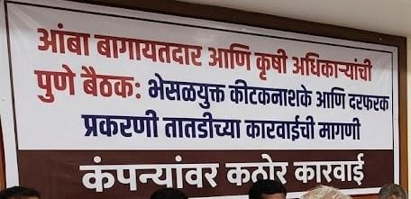 रत्नागिरी व सिंधुदुर्ग जिल्ह्यातील आंबा बागायतदार शेतकऱ्यांना चुकीची अथवा भेसळयुक्त कीटकनाशके पुरवून आर्थिक फटका दिल्याचे गंभीर प्रकरण समोर आले असून, काही कीटकनाशक कंपन्या आणि त्यांच्या अधिकृत विक्रेत्यांविरोधात तीव्र नाराजी व्यक्त होत आहे. औषधांच्या विक्रीदरात मोठी तफावत ठेवून शेतकऱ्यांची आर्थिक पिळवणूक करण्यात आल्याचा आरोपही पुढे आला आहे. या पार्श्वभूमीवर दोषी कंपन्यांवर कठोर कारवाई करावी आणि बाधित शेतकऱ्यांना नुकसानभरपाई मिळावी, या मागणीसाठी ९ एप्रिल रोजी दुपारी १२ वाजता कृषी आयुक्त कार्यालय येथे महत्त्वपूर्ण बैठक आयोजित करण्यात आली आहे.
