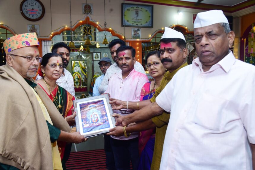 फोटो – पालीच्या श्री लक्ष्मीपल्लीनाथ देवस्थानच्या वार्षिक चैत्रोत्सवाची सेवा करणार्या सतीश नवाथे कुटुंबीयांचा सत्कार करताना देवस्थानचे अध्यक्ष संतोष सावंतदेसाई व सोबत देवस्थानचे मानकरी.