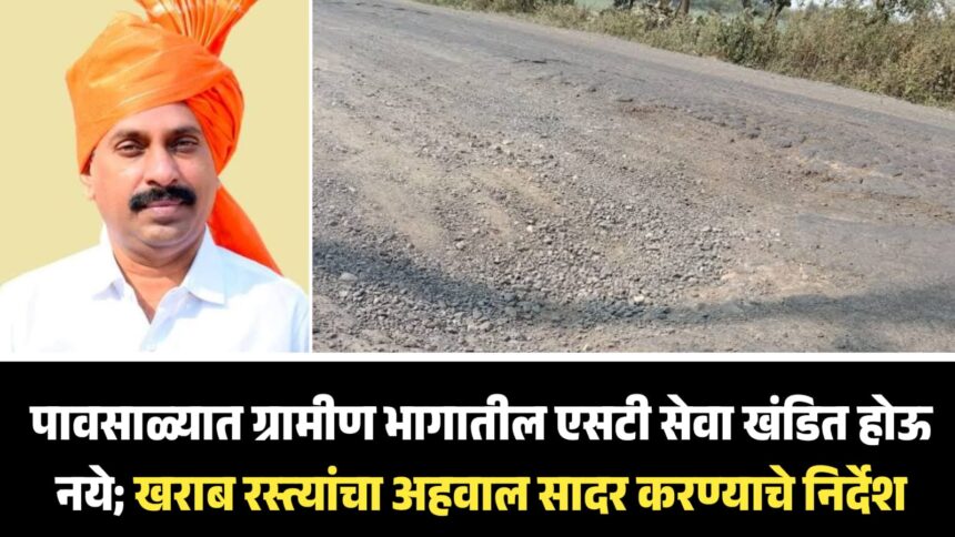 रस्त्यांच्या दुरवस्थेमुळे एस.टी. बससेवा अनेक भागांत बंद पडण्याची शक्यता निर्माण होत असल्याने, अशा ठिकाणांची यादी तयार करून तातडीने सादर करण्याचे निर्देश देण्यात आले आहेत. या यादीच्या आधारे परिस्थितीचे गांभीर्य लक्षात घेऊन पुढील कार्यवाही करण्यात येणार आहे.