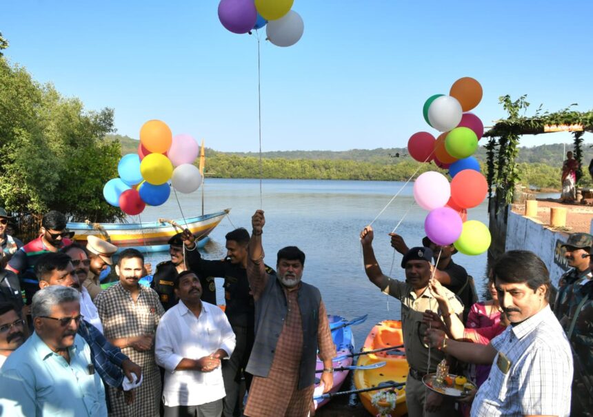 नारायणमळी, कांदळवन नाचणे येथे भारतात पहिल्यांदाच प्रायोगित तत्वावर राबविण्यात येणाऱ्या ‘स्वॅम्प पोलीस’ (Swamp Police) गस्त उपक्रमाचे उद्घाटन आज पालकमंत्री डॉ. उदय सामंत यांच्या हस्ते श्रीफळ वाढवून व हवेत फुगे सोडून करण्यात आले.*