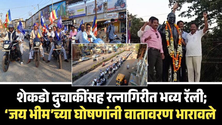 नाचणे आठवडा बाजार येथून प्रारंभ झालेली भव्य बाईक रॅली थिबा बुद्ध विहार येथे पोहोचताच वातावरण अधिकच पावन आणि आध्यात्मिक झाले. येथे उपस्थित आंबेडकरी बांधवांनी एकत्रितपणे त्रिशरण व पंचशील ग्रहण करून तथागत गौतम बुद्धांच्या विचारांना व मूल्यांना उजाळा दिला. शिस्तबद्ध व एकात्मतेच्या भावनेत पार पडलेला हा धार्मिक आणि वैचारिक क्षण रॅलीचा विशेष आकर्षण ठरला. यानंतर रॅलीची सांगता डॉ. बाबासाहेब आंबेडकर यांच्या पुतळ्याला पुष्पहार अर्पण करून अभिवादनाने करण्यात आली. कृतज्ञता, आदर आणि विचारांप्रती निष्ठा व्यक्त करत उपस्थितांनी “जय भीम”च्या घोषणांनी परिसर दुमदुमून सोडला.