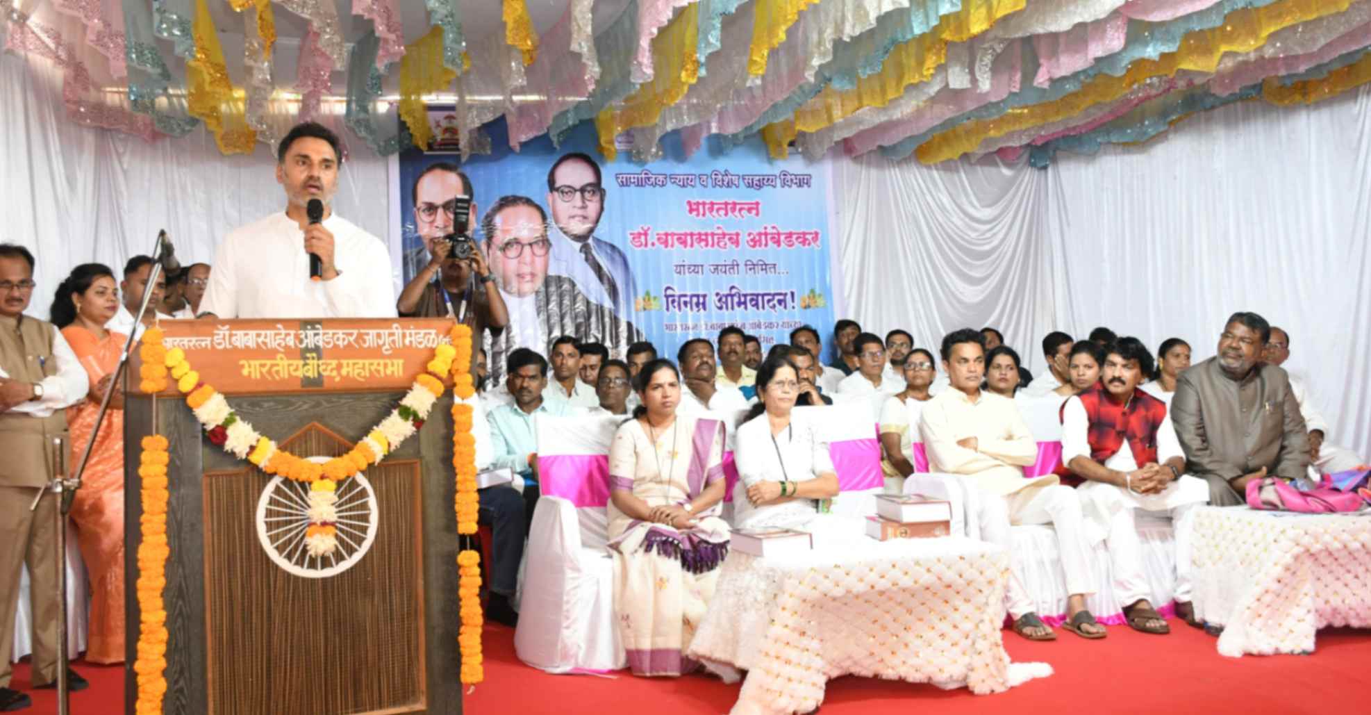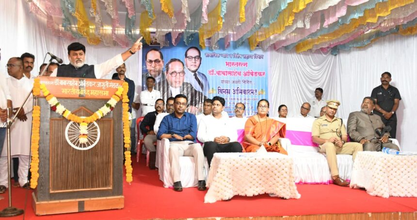 भारतरत्न डाॕ बाबासाहेब आंबेडकर जागृती मंडळाचे सचिव नरेंद्र सकपाळ यांनी कार्यक्रमाचे स्वागत, प्रास्ताविक केले. कार्यक्रमाला जिल्हा परिषद अध्यक्ष अस्मिता केंद्रे, पोलीस अधीक्षक नितीन बगाटे, अतिरिक्त मुख्य कार्यकारी अधिकारी परिक्षीत यादव, जि.प. समाज कल्याण सभापती सुयोग कांबळे, महिला व बाल विकास सभापती मयुरी शिर्के, पंचायत समिती सभापती प्रणाली चिले, दलितमित्र दादासाहेब मर्चंडे, प्रातांधिकारी डॉ. विजयकुमार सूर्यवंशी, सरपंच दीपिका जाकल आदींसह ग्रामस्थ मोठ्या संख्येने उपस्थित होते.