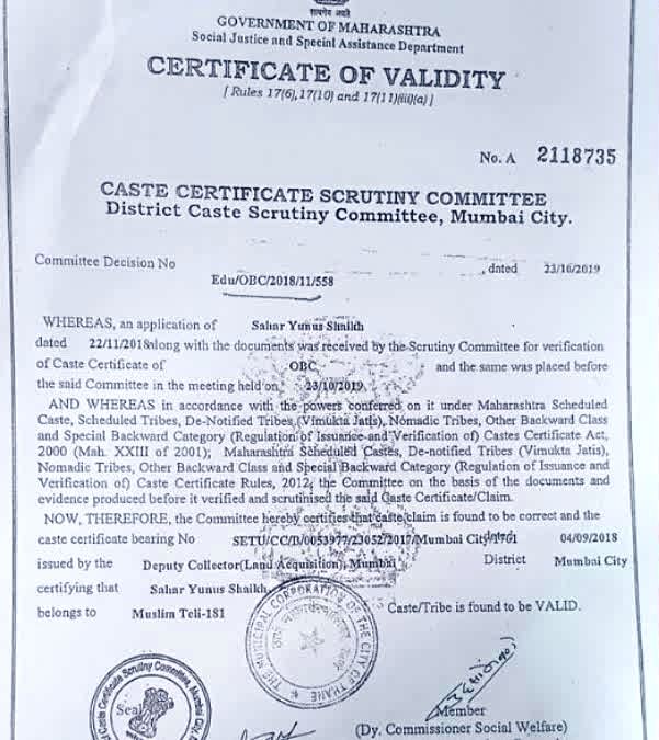 मात्र आता त्यांच्या निवडणुकीदरम्यान सादर केलेल्या जात प्रमाणपत्रावर गंभीर आक्षेप नोंदवण्यात आले आहेत. तक्रारदार सिद्दीकी फराह शबाब अहमद यांनी हे प्रमाणपत्र बनावट कागदपत्रांच्या आधारे मिळवण्यात आल्याचा आरोप केला आहे. त्यांच्या मते, या प्रक्रियेत शासकीय यंत्रणांची दिशाभूल करण्यात आली असून चार वेगवेगळ्या सरकारी कार्यालयांना चुकीची माहिती देण्यात आली आहे.
