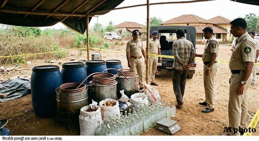 पोलिसांकडून मिळालेल्या माहितीनुसार, दि. १६ एप्रिल रोजी सकाळी सुमारे ८.१५ वाजण्याच्या सुमारास मिरजोळे, नाखरेकरवाडी येथील झाडीझुडपांच्या भागात आरोपी सुनिल सदाशिव जाधव (वय ५४, रा. मिरजोळे, बौद्धवाडी) हा बेकायदेशीरपणे, कोणताही परवाना नसताना गावठी हातभट्टी दारू तयार करत असल्याची माहिती मिळाली होती. त्यानुसार पोलिसांनी तत्काळ छापा टाकत कारवाई केली. या वेळी आरोपीकडून गुळ-नवसागर मिश्रित सुमारे २६०० लिटर कुजके रसायन, तयार दारू तसेच दारू निर्मितीसाठी लागणारे विविध साहित्य जप्त करण्यात आले. यामध्ये २०० लिटर क्षमतेची १३ बॅरल, दोन प्लास्टिक बॅरल, २० लिटर क्षमतेचे कॅन, अल्युमिनियम डेग, लाकडी चाटू व इतर उपकरणांचा समावेश आहे. जप्त मुद्देमालाची एकूण किंमत अंदाजे १,०७,००० रुपये इतकी आहे.