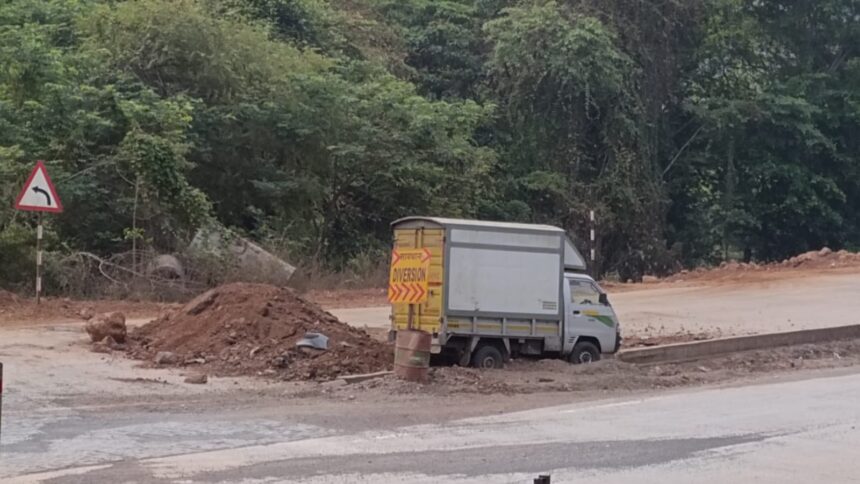 शनिवारी रात्री पुन्हा एकदा गंभीर अपघात घडला. कोणतेही इशारा फलक, रिफ्लेक्टर्स किंवा बॅरिकेड्स नसल्याने अंधारात चालकाला समोरील ढिगारा दिसला नाही. वेगात असलेले चारचाकी वाहन थेट त्या ढिगाऱ्यावर आदळून हवेत उडाले आणि जोरात खाली आपटले. वाहनात दोन लहान मुलांसह कुटुंब प्रवास करत होते. सुदैवाने जीवितहानी टळली, मात्र वाहनाचे मोठे नुकसान झाले असून कुटुंब हादरून गेले आहे.