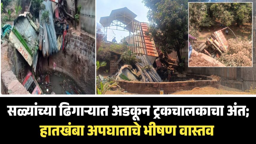 हातखंबा येथील भीषण अपघातात ट्रकचालकाचा दुर्दैवी मृत्यू झाल्याची माहिती १९ एप्रिल रोजी संध्याकाळी उशिरा समोर आली असून, दुर्घटनेचे स्वरूप किती भयावह होते, याचे अंगावर शहारे आणणारे चित्र उघड झाले आहे. विशाल गोकुळ माने (वय २५, रा. धाराशिव) असे मृत ट्रकचालकाचे नाव आहे, लोखंडी सळ्यांच्या ढिगाऱ्यात अडकून त्यांचा जागीच अंत झाल्याचे बोलले जात आहे.