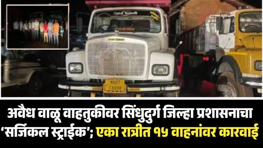 सिंधुदुर्ग जिल्ह्यात वाढत्या अवैध वाळू वाहतुकीच्या तक्रारींची गंभीर दखल घेत जिल्हाधिकारी तृप्ती धोडमिसे यांच्या नेतृत्वाखाली महसूल विभागाने नियोजनबद्ध आणि समन्वित ‘सर्जिकल स्ट्राईक’ राबवत अवैध कारभारावर मोठा घाव घातला. जिल्हाधिकाऱ्यांच्या स्पष्ट सूचनांनुसार विविध तालुक्यांतील तहसीलदारांनी संयुक्त पथके तयार करून एकाच वेळी अनेक ठिकाणी धडक कारवाया केल्या.