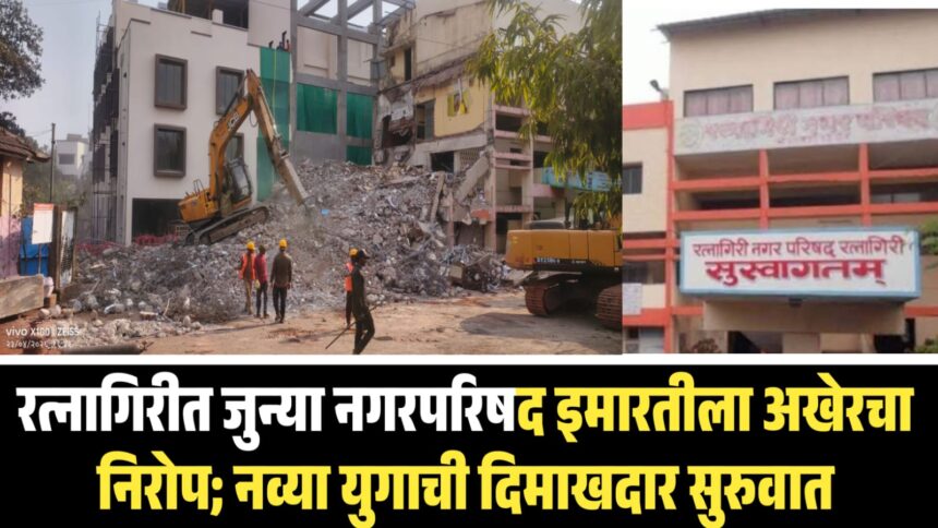 सन १९७१ मध्ये उभारण्यात आलेल्या या इमारतीचे उद्घाटन १६ मे १९७१ रोजी तत्कालीन खासदार दिवंगत शामराव पेजे यांच्या हस्ते पार पडले होते. त्यानंतर अनेक नगराध्यक्ष आणि नगरसेवकांच्या कार्यकाळाचे साक्षीदार ठरलेले हे भवन रत्नागिरीच्या प्रशासकीय जीवनाचा अविभाज्य भाग बनले होते. शहराच्या मध्यवर्ती ठिकाणी वसलेली ही टुमदार वास्तू नागरिकांचे लक्ष वेधून घेत असे. मात्र, काळाच्या ओघात इमारतीची झीज वाढत गेली आणि ठिकठिकाणी बांधकाम ढासळू लागल्याने ती धोकादायक ठरू लागली होती. नवीन प्रशासकीय इमारतीचे बांधकाम पूर्णत्वास आल्यानंतर जुनी इमारत रिकामी करून सर्व कागदपत्रे व साहित्य नव्या इमारतीत हलविण्यात आले. त्यानंतर आता या जुन्या वास्तूच्या निर्लेखनाला गती देण्यात आली आहे. गुरुवारी सायंकाळपर्यंत इमारतीचा मोठा भाग पाडण्यात आला असून परिसरात माती व अवशेषांचा ढिगारा साचलेला दिसत होता. येत्या काही दिवसांत ही इमारत पूर्णपणे जमीनदोस्त करून जागेचे सपाटीकरण करण्यात येणार आहे.