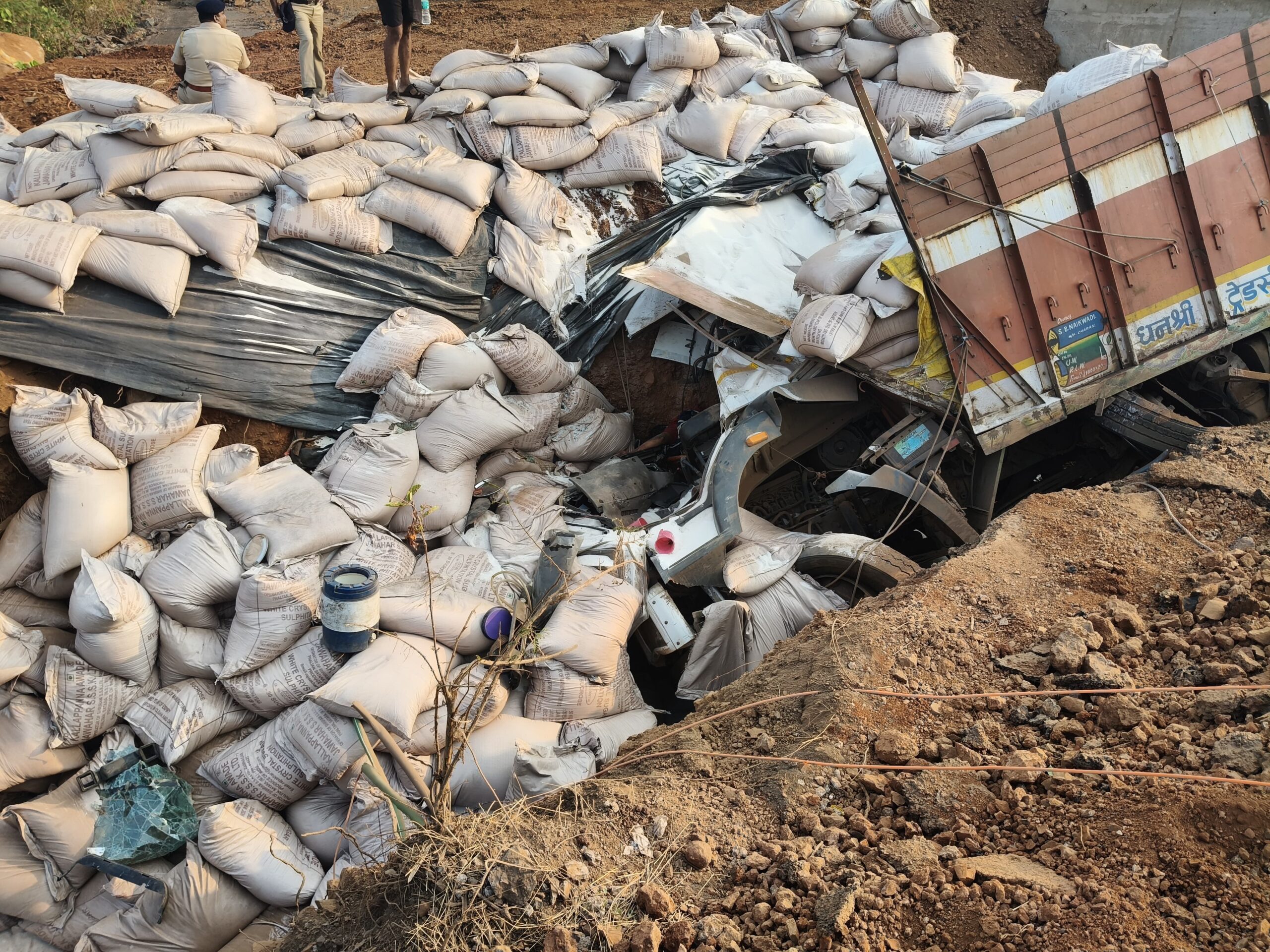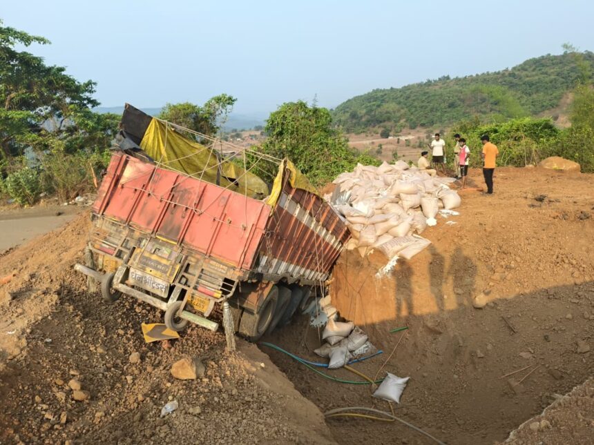 मिळालेल्या माहितीनुसार, ट्रक (क्रमांक MH/10/DT/4409) क्रमांकाचा ट्रक ३१ टन साखर घेऊन कोल्हापूरहून जयगडकडे निघाला होता. चालक समशेर अन्सारी (वय ४०, रा. झारखंड-बिहार) हा वाहन चालवत असताना घाटातील तीव्र वळणावर नियंत्रण सुटले. अतिवेग, निष्काळजीपणा आणि झोपेच्या अंमलामुळे ट्रकने स्वतःची लेन सोडून मध्यभागी असलेला डिव्हायडर ओलांडला आणि समोरच्या लेनमध्ये घुसला. त्यानंतर रस्त्यालगत असलेल्या पाण्याच्या खोल चरात जाऊन ट्रक पलटी झाला. या भीषण अपघातात चालक समशेर अन्सारी याच्या डोक्याला, हाताला, पायाला आणि पाठीला गंभीर दुखापत झाली आहे. अपघातानंतर स्थानिकांच्या मदतीने त्याला तत्काळ ग्रामीण रुग्णालय, साखरपा येथे उपचारासाठी दाखल करण्यात आले.