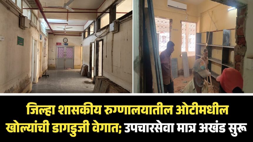 शासकीय रुग्णालयातील ऑपरेशन थिएटर (ओटी) परिसरातील आजूबाजूच्या खोल्यांची डागडुजी सध्या युद्धपातळीवर सुरू असून, काम सुरू असतानाही उपचारसेवेवर कोणताही परिणाम होऊ दिला जात नसल्याचे चित्र समोर आले आहे. दुरुस्तीच्या कामामुळे काही खोल्यांमध्ये माती व धुळीचे प्रमाण वाढले असले, तरी ओटीमधील डॉक्टरांची ये-जा आणि रुग्णांची शस्त्रक्रिया नियमितपणे सुरू असल्याने रुग्णसेवेची साखळी अबाधित ठेवण्याचा प्रयत्न प्रशासनाकडून होत आहे.