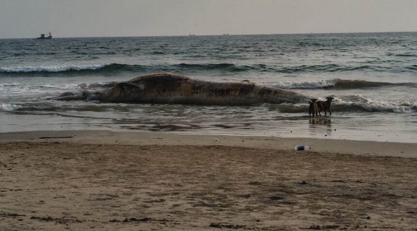 रत्नागिरी शहरा नजीकच्या किनारपट्टीवरील प्रसिद्ध पर्यटनस्थळ आरे वारे बीच येथे काल (रविवारी, ता. 26) रोजी एका महाकाय व्हेल माशाचा मृतदेह आढळून आल्याने परिसरात खळबळ उडाली आहे. समुद्रात तरंगत असलेला हा मृतदेह किनाऱ्यालगत दिसून आल्यानंतर स्थानिक नागरिकांनी तत्काळ प्रशासनाला माहिती दिली.