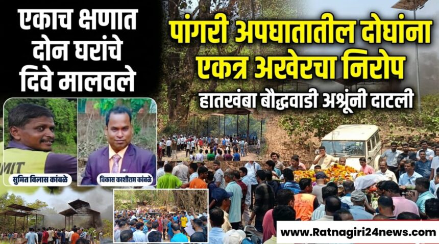देवरुख बावनदी मार्गावरील पांगरी येथील भीषण अपघातात मृत्यूमुखी पडलेल्या सुमित विलास कांबळे आणि विकास काशीराम कांबळे या दोघांवर सोमवारी (दि. २७ एप्रिल) हातखंबा बौद्धवाडी येथील दफनभूमीत अत्यंत शोकाकुल वातावरणात अंत्यसंस्कार करण्यात आले. काही क्षणांत हिरावलेल्या या दोन तरुणांच्या जाण्याने बौद्धवाडीवर दुःखाचा डोंगर कोसळला असून, अखेरच्या निरोपाच्या वेळी ग्रामस्थांच्या डोळ्यांतून अश्रूंचा बांध फुटला. एकाच क्षणात दोन घरांचे दिवे मालवले गेल्याने बौद्धवाडीवर दुःखाची दाट छाया पसरली आहे.