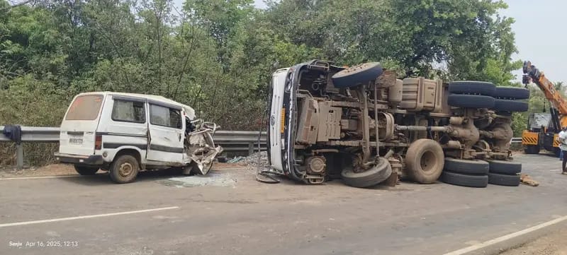 देवरुख-रत्नागिरी मार्गावरील पूर गावाजवळच्या धोकादायक वळणावर आज (बुधवार) सकाळी सुमारे ११ वाजता भीषण अपघात घडला. डंपरने मारुती ओम्नी कारला जोरदार धडक दिली, या अपघातात डंपर रस्त्यावर उलटला. या अपघातात ओम्नीमधील दोन प्रवासी गंभीर जखमी झाले आहेत. अपघातानंतर स्थानिक नागरिक आणि पोलिसांनी तातडीने घटनास्थळी धाव घेतली. जखमींना त्वरित देवरुख ग्रामीण रुग्णालयात दाखल करण्यात आले असून त्यांच्यावर उपचार सुरू आहेत.