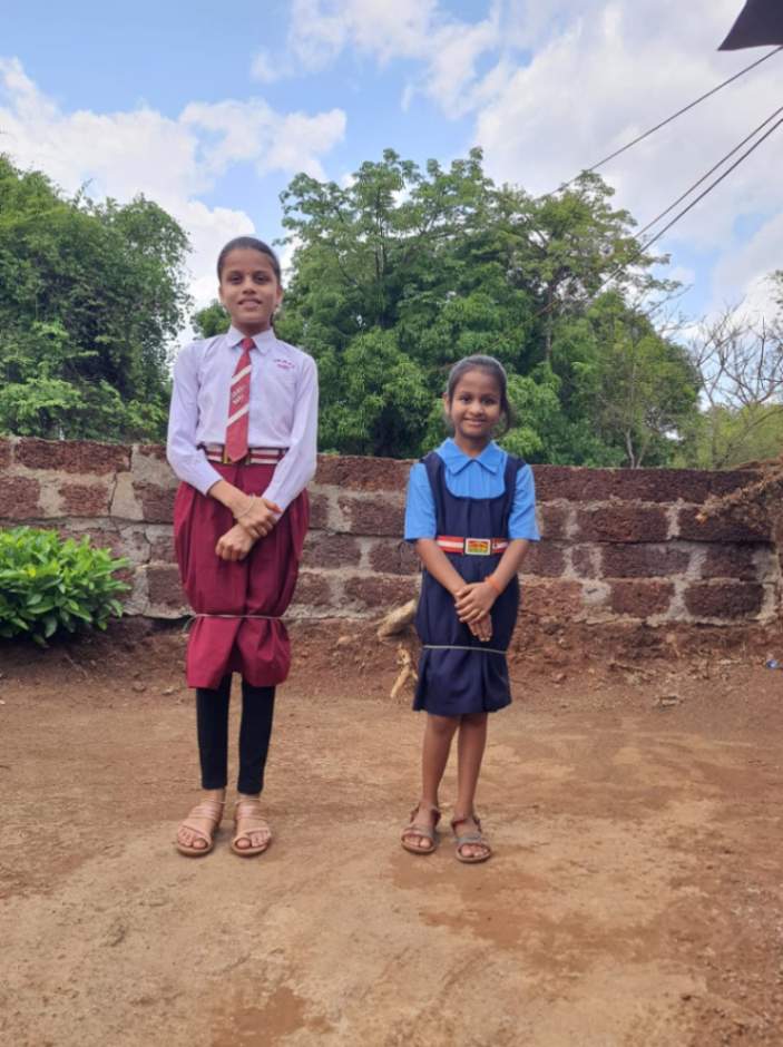 फोटो: पालीतील विद्यार्थीनी वेदा मिरजकर व प्राजक्ता काटकर या शून्य सावली अनुभवताना.