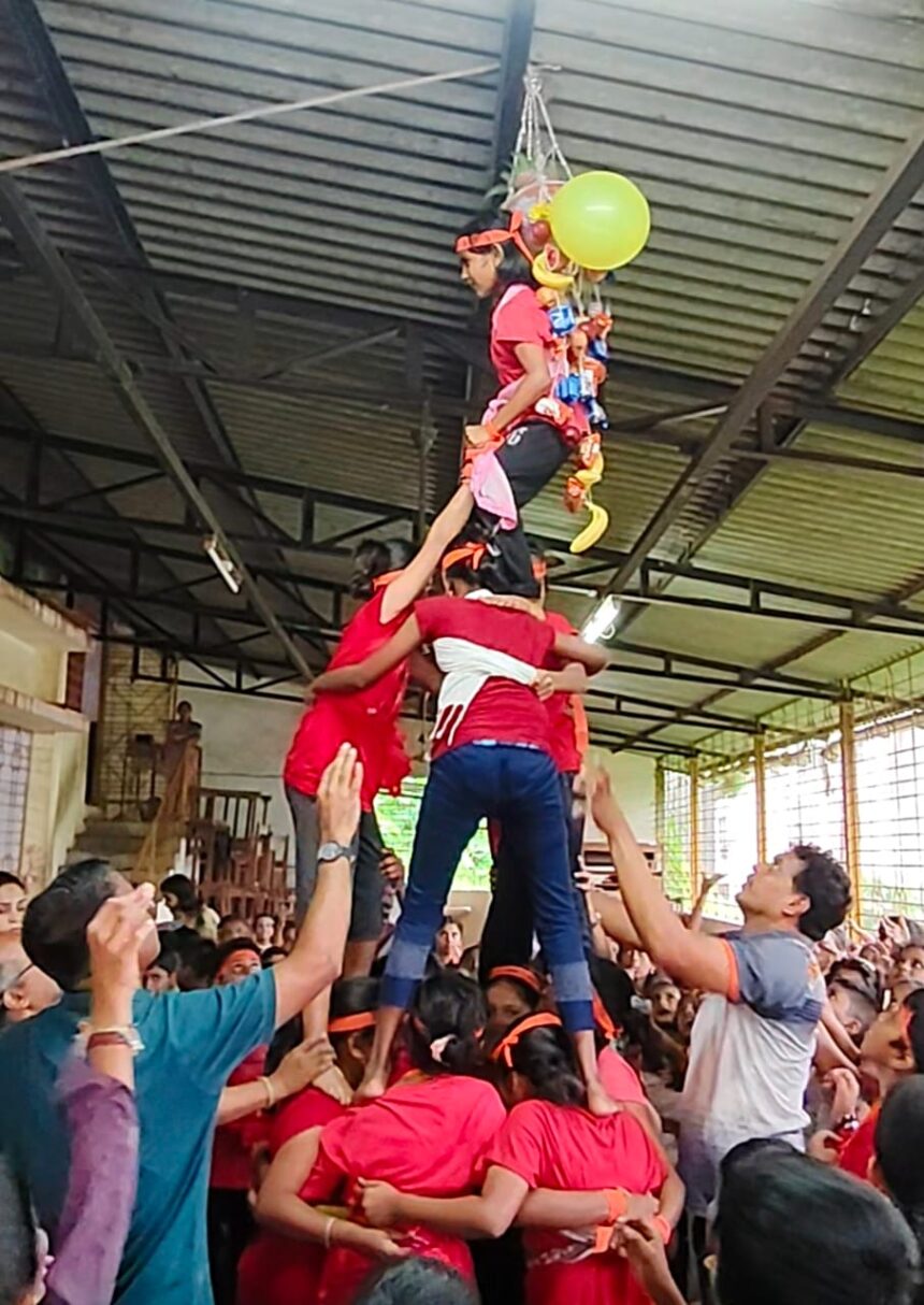 कार्यक्रमाची सुरुवात श्रीकृष्णाच्या मूर्ती पूजनाने झाली. पहिली ते तिसरीतील विद्यार्थ्यांनी राधा-कृष्णाचे वेश परिधान करून लहान गोप-गोपिकांच्या वेशात रंगत आणली, तर चौथीच्या विद्यार्थ्यांनी आकर्षक नृत्याने उपस्थितांची मने जिंकली. मुख्य आकर्षण ठरले ते पाचवीतील चिमुकल्यांनी रचलेले मानवी मनोरे आणि त्यातून पारंपरिक पद्धतीने फोडलेली दहीहंडी.