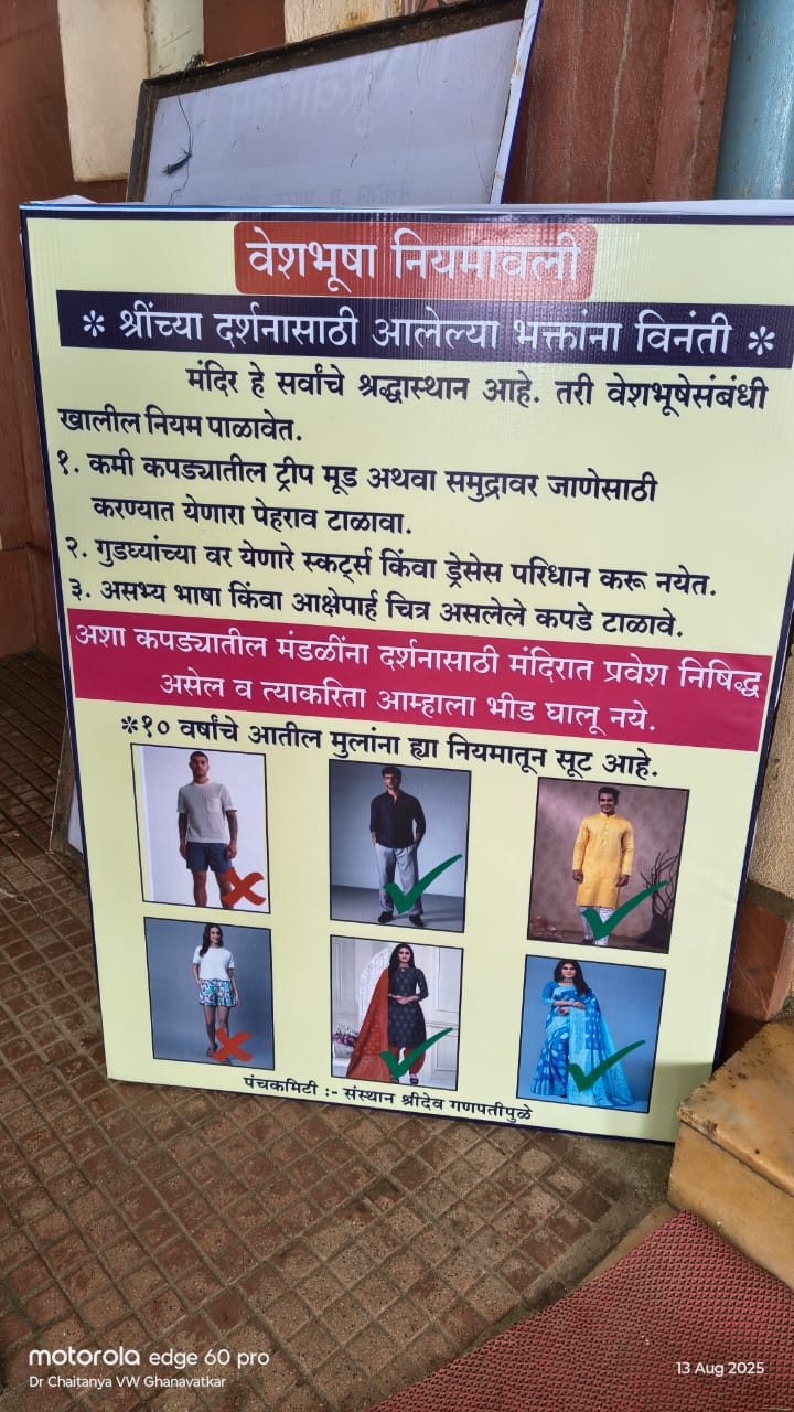 गेल्या काही महिन्यांपासून मंदिरात वस्त्रसंहिता लागू करण्याची मागणी होत होती. आता पंचकमिटीच्या निर्णयामुळे ही मागणी पूर्ण झाली असून, भक्तांमध्ये समाधान व्यक्त होत आहे. अनेक धार्मिक आस्थापनांमध्ये आधीपासूनच वस्त्रसंहिता पाळली जाते, त्याच धर्तीवर गणपतीपुळे देवस्थानही हा नियम लागू करण्यात आला आहे.