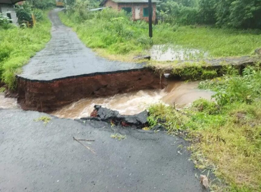 पावसामुळे दुथडी भरून वाहणाऱ्या ओव्यामुळे रस्त्याला भगदाड पडले. या रस्त्यावरूनच नळपाणी योजनेचे पाईप जात असल्याने पाणीपुरवठाही विस्कळीत झाला आहे. तसेच, रस्त्यालगत असलेली पिण्याच्या पाण्याची विहीर नागरिकांसाठी दुर्गम झाली आहे. त्यामुळे स्थानिक ग्रामस्थांना पिण्याच्या पाण्याची तीव्र समस्या भेडसावत आहे.