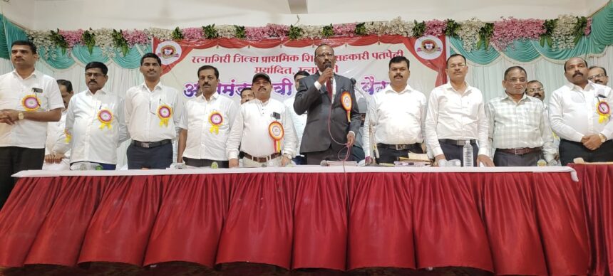 रत्नागिरी जिल्हा प्राथमिक शिक्षक सहकारी पतपेढीची वार्षिक सर्वसाधारण सभा आज रत्नागिरी येथील बालाजी मंगल कार्यालय येथे उत्साहात संपन्न झाली. यावेळी पतपेढीच्या सभासदांना १५ % लाभांश देण्याचे घोषित करण्यात आले , शिवाय सभासदांच्या हितासाठी कल्याणकारी योजनाही ठरविण्यात आल्या. सभेच्या प्रारंभी पेहलगाम हल्ल्यांमध्ये मृत्युमुखी झालेल्या भारतीय नागरिकांनाव वर्षभरामध्ये भारतातील महान व्यक्ती निधन पावले, ऑपरेशन सिंदूर दरम्यान भारतीय सैन्य दलातील काही सैनिक कर्तव्य बजावत असताना शहीद झाले अशा सर्वांना श्रद्धांजली अर्पण करण्यात आली. रत्नागिरी जिल्ह्यातील ज्यांना आदर्श शिक्षक पुरस्कार प्राप्त झाले आहे अशा शिक्षकांचा प्रमाणपत्र देऊन सन्मान करण्यात आला. सभासदांसाठी विविध कल्याणकारी योजना आणण्याचे धोरण यावर्षी पतपेढीने ठरवले आहे.