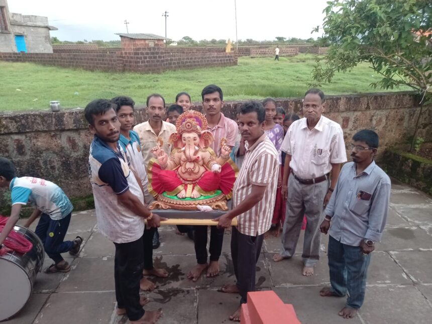 (Photo : रत्नागिरी तालुक्यातील मेर्वी येथे हरतालिका तृतीयेला गणेश भक्तांनी आपल्या लाडक्या बाप्पाला घरी आणतानाचे छायाचित्र)