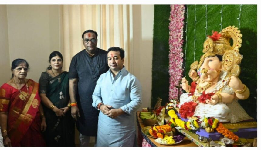 मत्स्य व्यवसाय व बंदरे मंत्री तथा रत्नागिरीचे संपर्क मंत्री नितेश राणे आज खेड शहराच्या दौऱ्यावर आले असता त्यांनी खेडचे माजी नगराध्यक्ष वैभव खेडेकर यांच्या घरी विराजमान झालेल्या बाप्पाचे दर्शन घेतले.