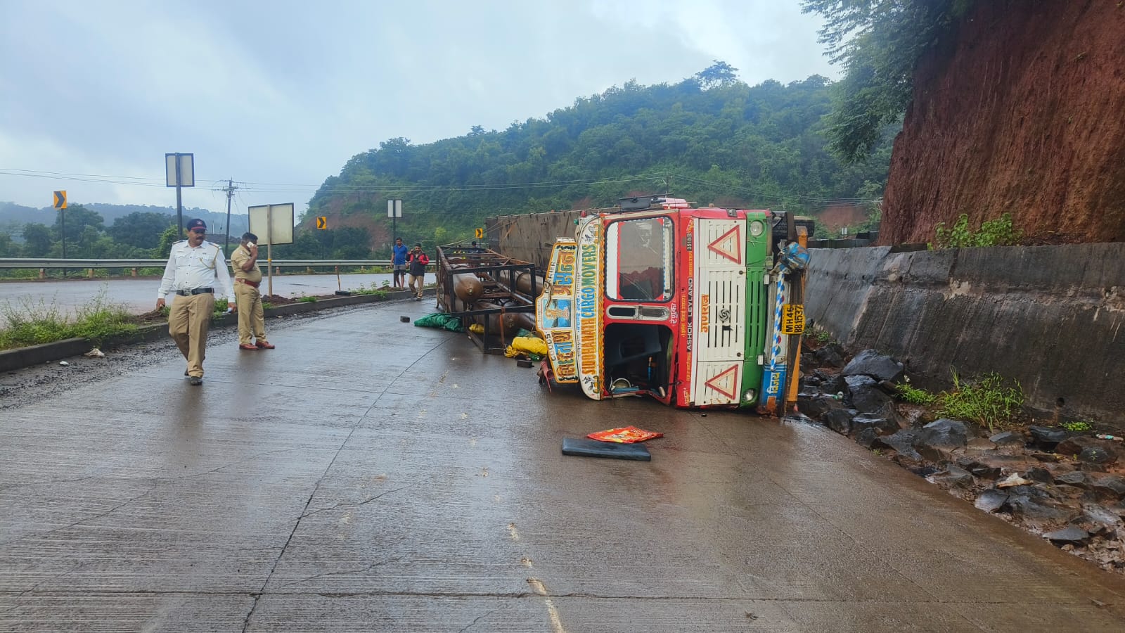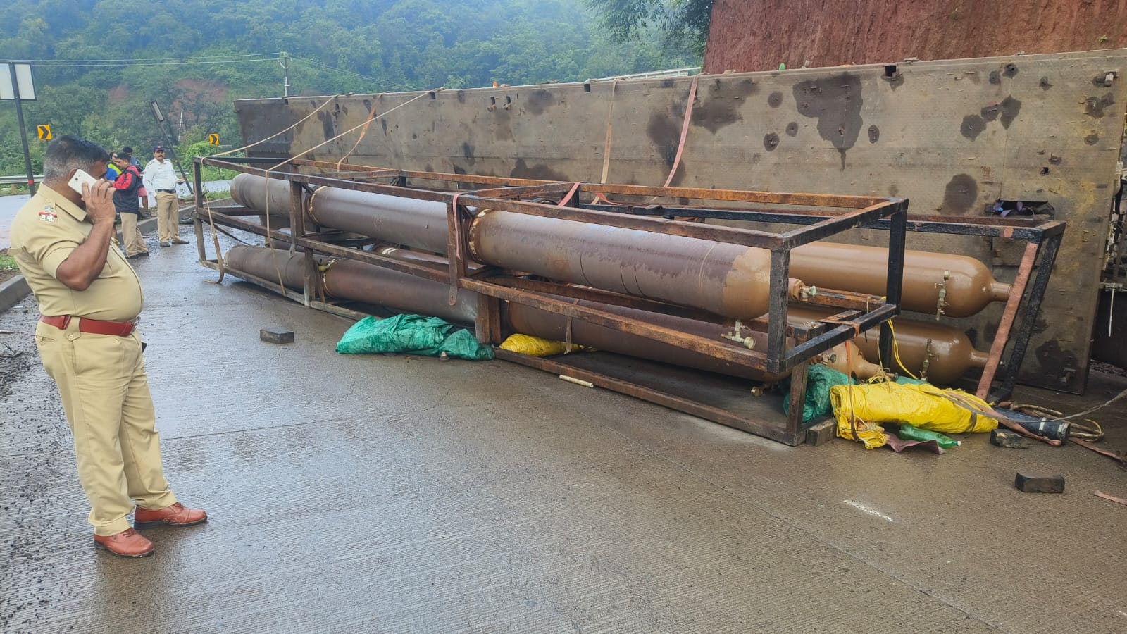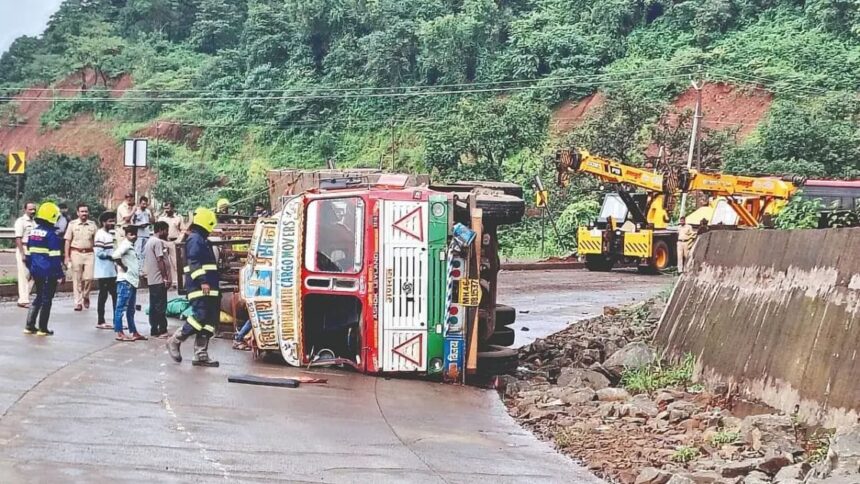 मृत चालकाचे नाव सुभाष जगतपाल वर्मा (वय २३, रा. छतरपूर, उत्तर प्रदेश) असे असून, तो (एमएच ४६ बीबी १५३७) क्रमांकाच्या कंटेनरमधून ऑक्सिजन व हिलियम गॅस घेऊन जयगडहून मुंबईच्या दिशेने जात होता. बावनदी-सुतारवाडी येथील उतारावर भरधाव वेगामुळे त्याचा कंटेनरवरील ताबा सुटला आणि वाहन उलटले. या अपघातात गंभीर जखमी झालेल्या सुभाषला तातडीने जिल्हा शासकीय रुग्णालयात दाखल करण्यात आले; मात्र उपचारादरम्यान त्याचा मृत्यू झाला.