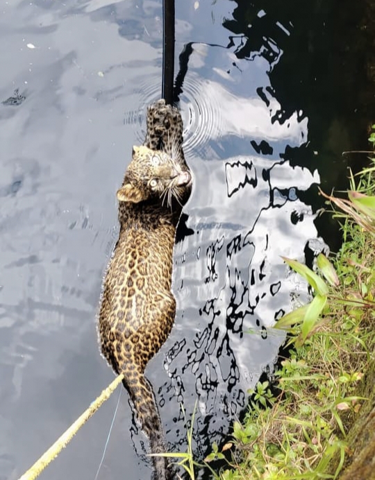 घटनास्थळी पोहोचल्यावर, बचाव पथकाला घराच्या मागील बाजूस १०० फूट अंतरावर असलेल्या एका विहिरीत बिबट्या अडकलेला दिसला. विहिरीची खोली ४० फूट असून, पाण्याची पातळी ५ फुटांवर होती. बिबट्या पाण्याच्या पृष्ठभागावर असलेल्या मोटर पाईप आणि दोरीला धरून बचावण्याचा प्रयत्न करत होता. त्याची स्थिती पाहून, पथकाने वेळ न घालवता बचावकार्य सुरू केले.