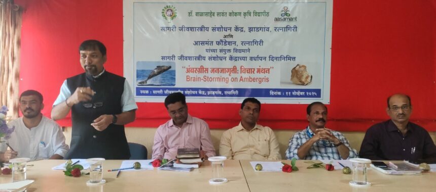 (रत्नागिरी) दिनांक ११ नोव्हेंबर २०२५ रोजी सागरी जीवशास्त्रीय संशोधन केंद्र, रत्नागिरी या केंद्राचा वर्धापनदिन निमित्त "अंबरग्रीस जनजागृतीसाठी विचार मंथन" (Brain-storming on Ambergris) ही कार्यशाळेचे यशस्वी आयोजन करण्यात आले होते. या…