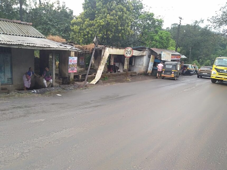 दाभोळे बस थांब्यावरील प्रवासी मार्ग निवारा शेडची दुरावस्था; प्रवाशांचा जीव धोक्यात