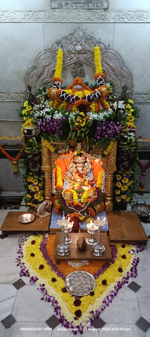 गणपतीपुळेतील “एक गाव, एक गणपती” परंपरेनुसार गणेश चतुर्थीला भाविकांना स्वयंभू श्रींचे स्पर्शदर्शन